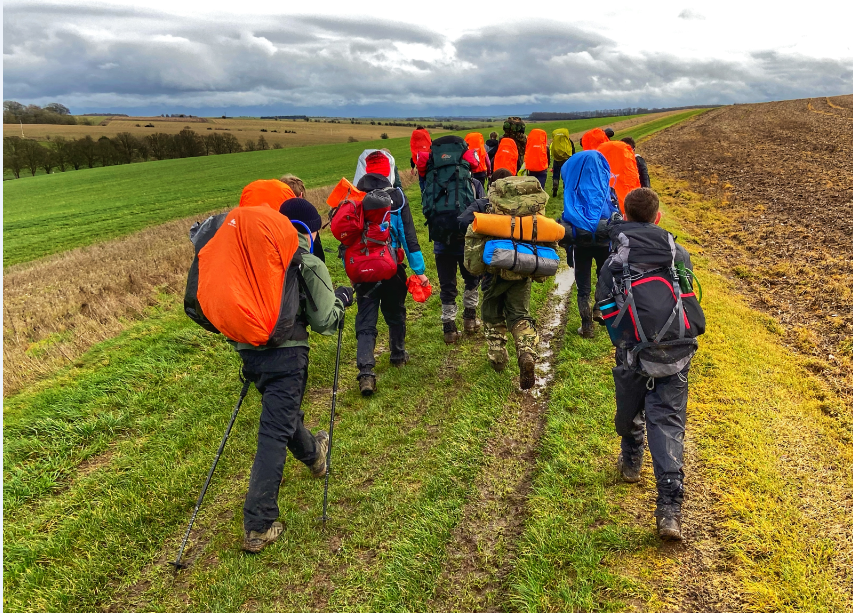 On Saturday 14th October, 29 hardy students set off in the blustery rain traversing the Imber Range Perimeter Path - a 32-mile (the older students did about 36 miles) circuit of eastern Sailsbury Plain. With a camp planned after 20 miles at Chitterne, students' bags were bursting with stoves, sleeping bags, tents, food and water and soon the increase in weight began to take its toll on students' legs and feet.